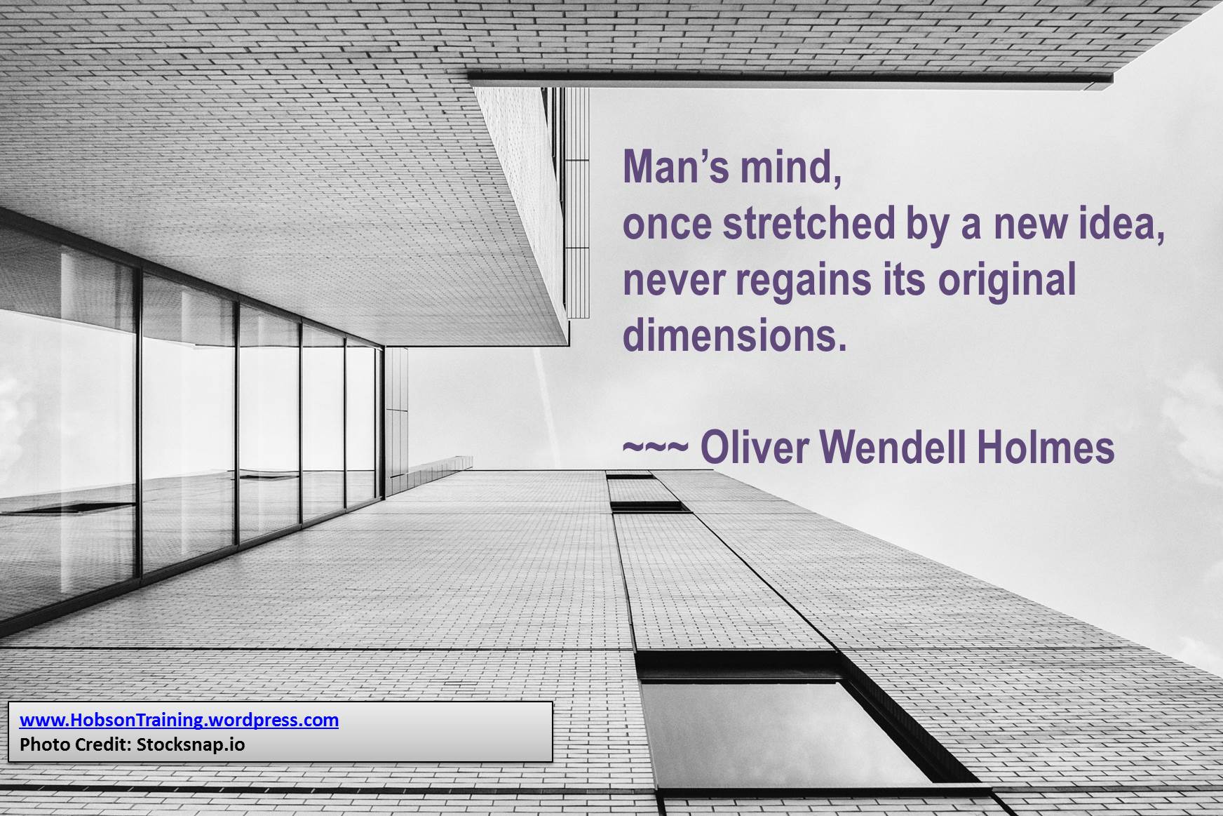 Updated 6/28/15 Man’s mind, once stretched by a new idea, never regains its original dimensions. ~~~ Oliver Wendell Holmes Spread the News!Tweet Click to email a link to a friend (Opens in new window) Email Like Loading... Related