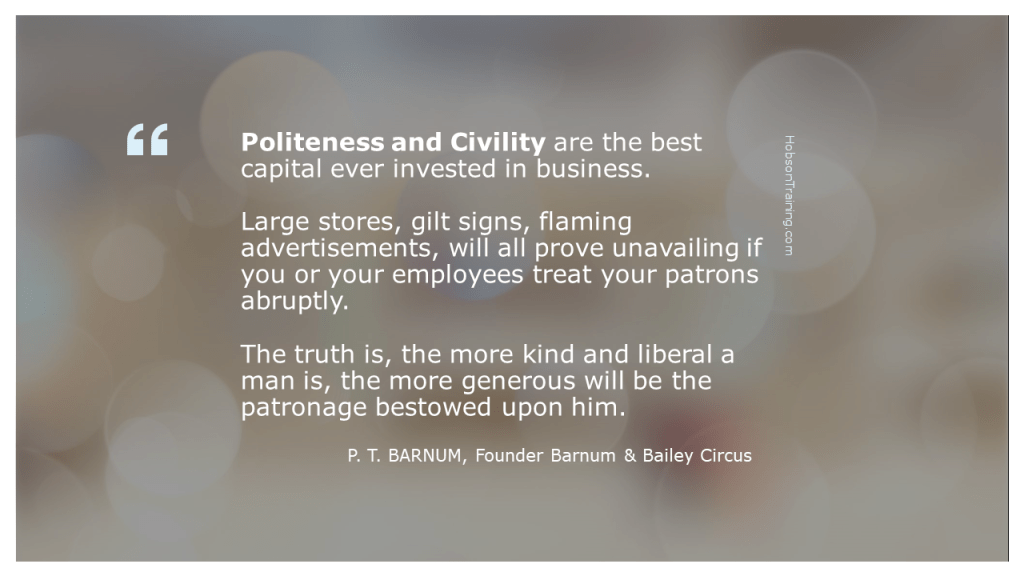 Politeness and civility are the best capital ever invested in business. Large stores, gilt signs, flaming advertisements, will all prove unavailing if you or your employees treat your patrons abruptly. The truth is, the more kind and liberal a man is, the more generous will be the patronage bestowed upon him.