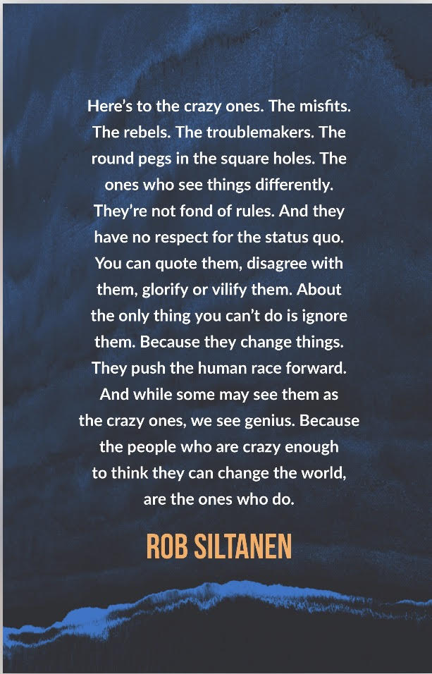 “Here’s to the crazy ones. The misfits, the rebels. The troublemakers. The round pegs in the square holes. The ones who see things differently…”