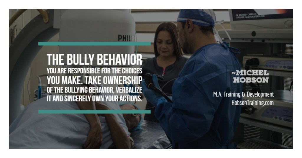 “As a person who does the bullying – you are responsible for the choices you make. Take ownership of the bullying behavior, verbalize it, and sincerely own your actions.”