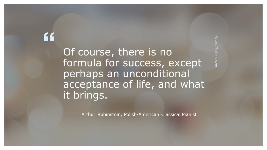 Of course, there is no formula for success, except perhaps an unconditional acceptance of life, and what it brings.