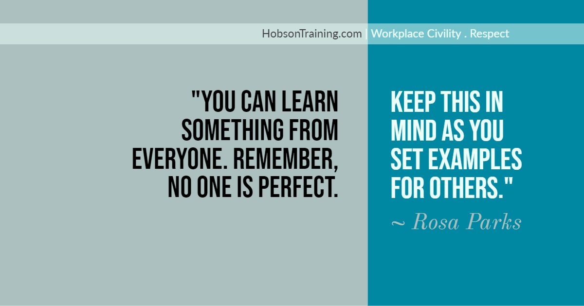 You can learn something from everyone. Remember, no one is perfect. Keep this in mind as you set examples for others. Rosa Parks Checklist Difficult Conversations with Your Coworkers Practicing behaviors that lead to greater team work and improved communication in the workplace. Order Now Spread the News!Tweet Click to email a link to a friend (Opens in new window) Email