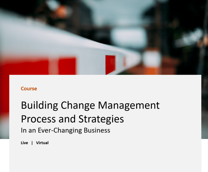 All around us, technologies, processes, people, ideas, and methods change, affecting the way we communicate, work, and live. Having a defined process and strategy will support the transition when change and attendees will gain some valuable skills through this on-demand course.